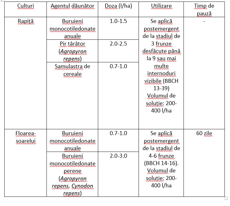 - Este un erbicid cu acțiune rapidă (primele simptome ale buruienilor sensibile sunt vizibile în 48 ore de la aplicarea produsului).